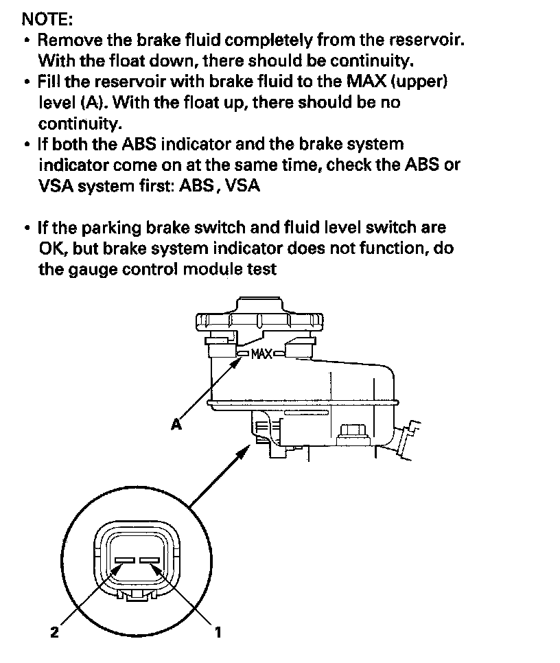 Brake Fluid Level Sensor/Switch: Testing and Inspection