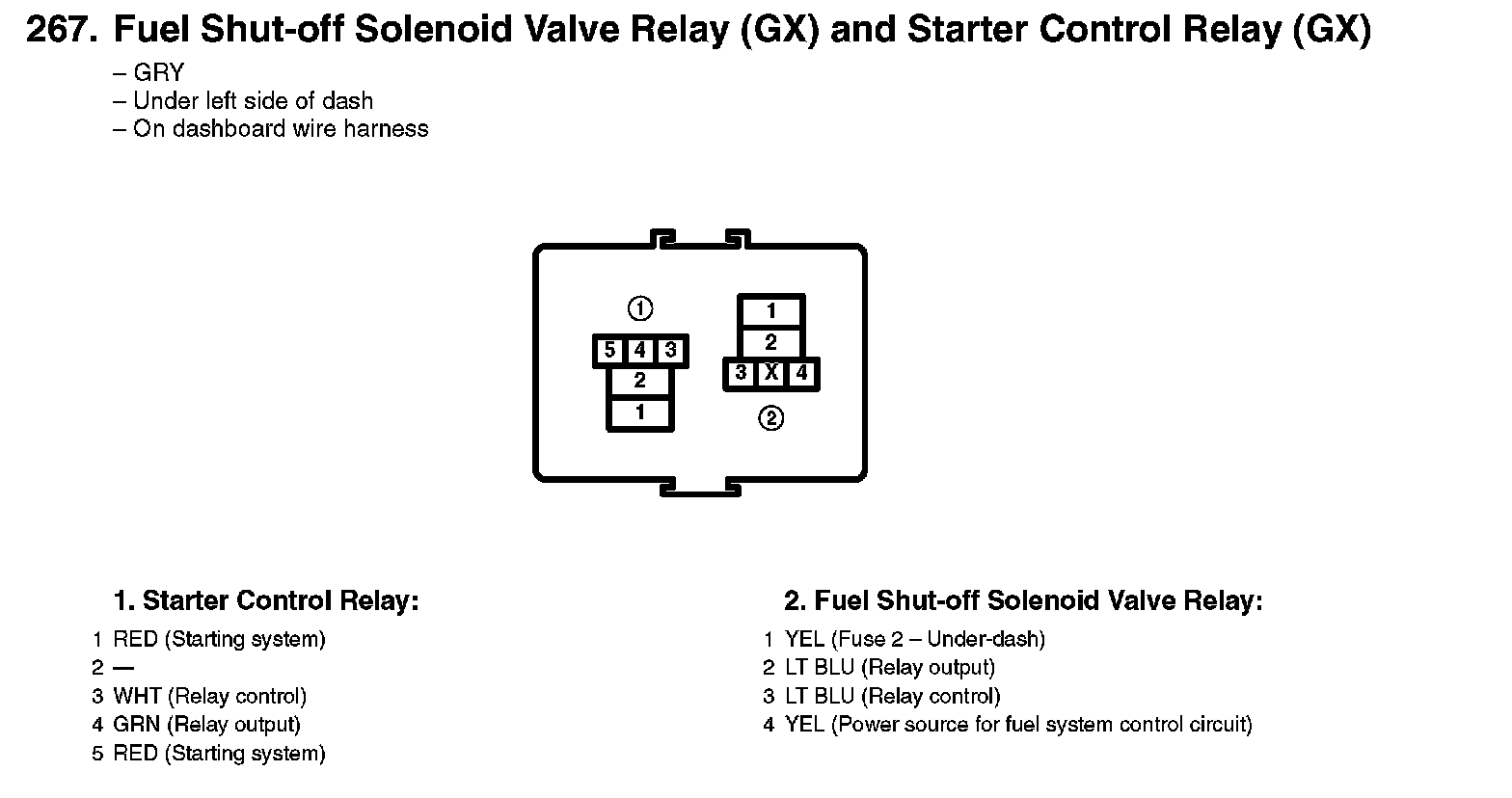 267. Fuel Shut-off Solenoid Valve Relay (GX) And Starter Control Relay (GX):