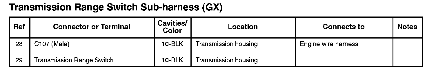 Transmission Range Switch Sub-harness (GX):