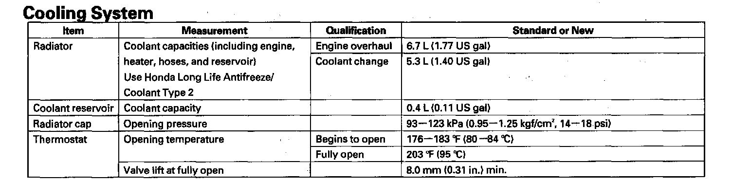 Cooling System: Specifications