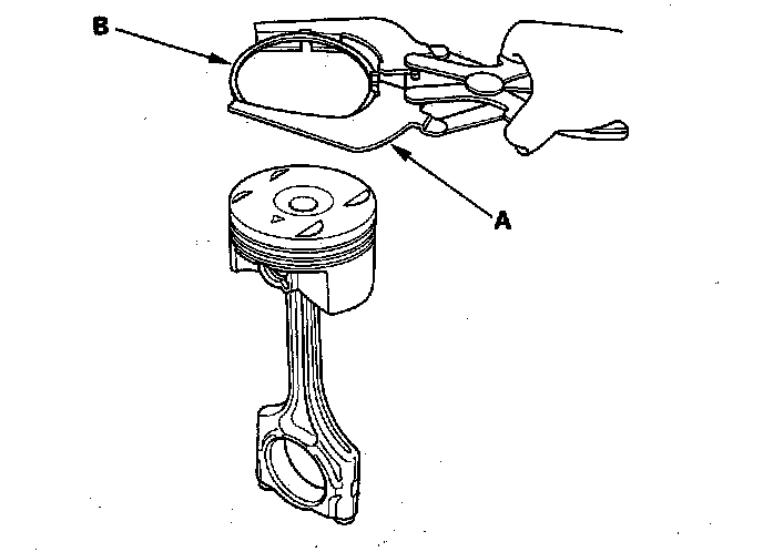 5. Measure the piston ring end-gap (B) with a feeler gauge: