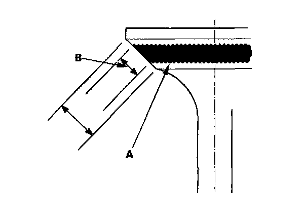7. The actual valve seating surface (B), as shown by the blue compound, should be centered on the seat.