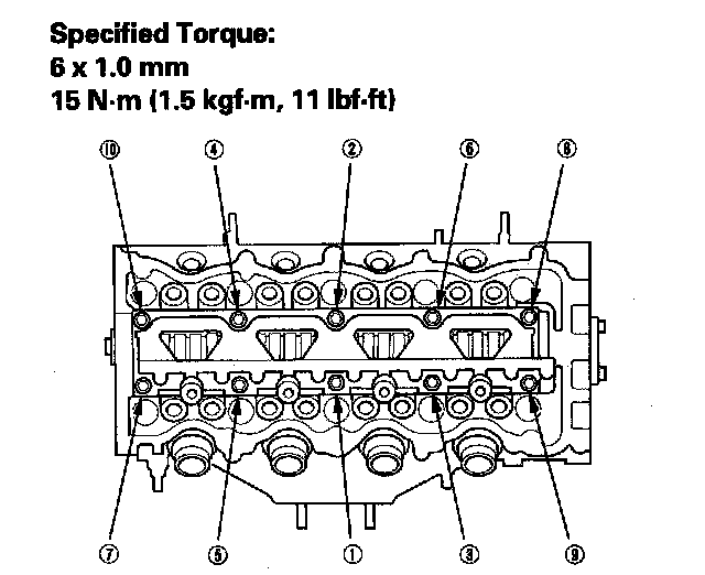 3. Put the rocker shaft holders on the cylinder head, then tighten the bolts, in sequence, to the specified torque.