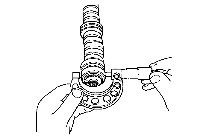 8. Measure the diameter of each camshaft journal.