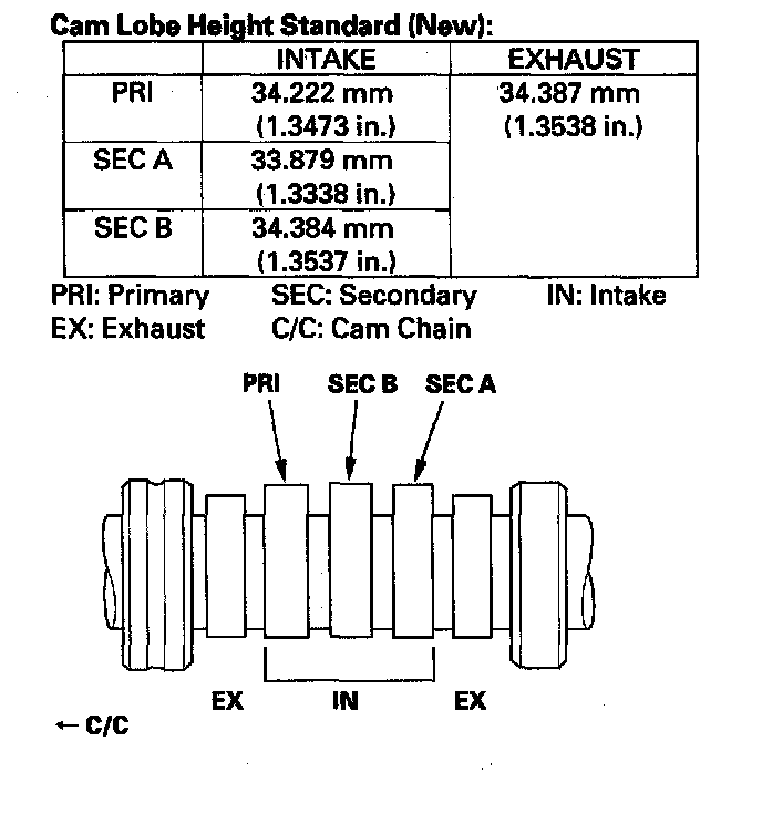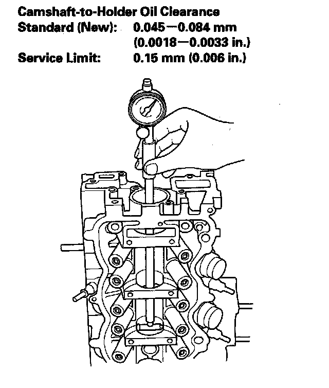 ^ If the camshaft-to-holder clearance is beyond the service limit, and the camshaft has been replaced, replace the cylinder head.
