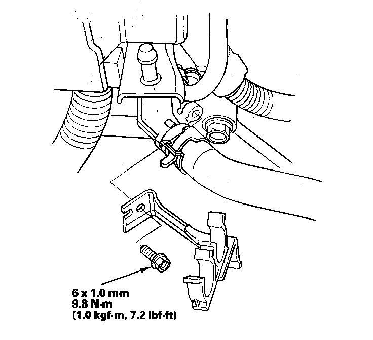 6. Install the heater hose clamp bracket.