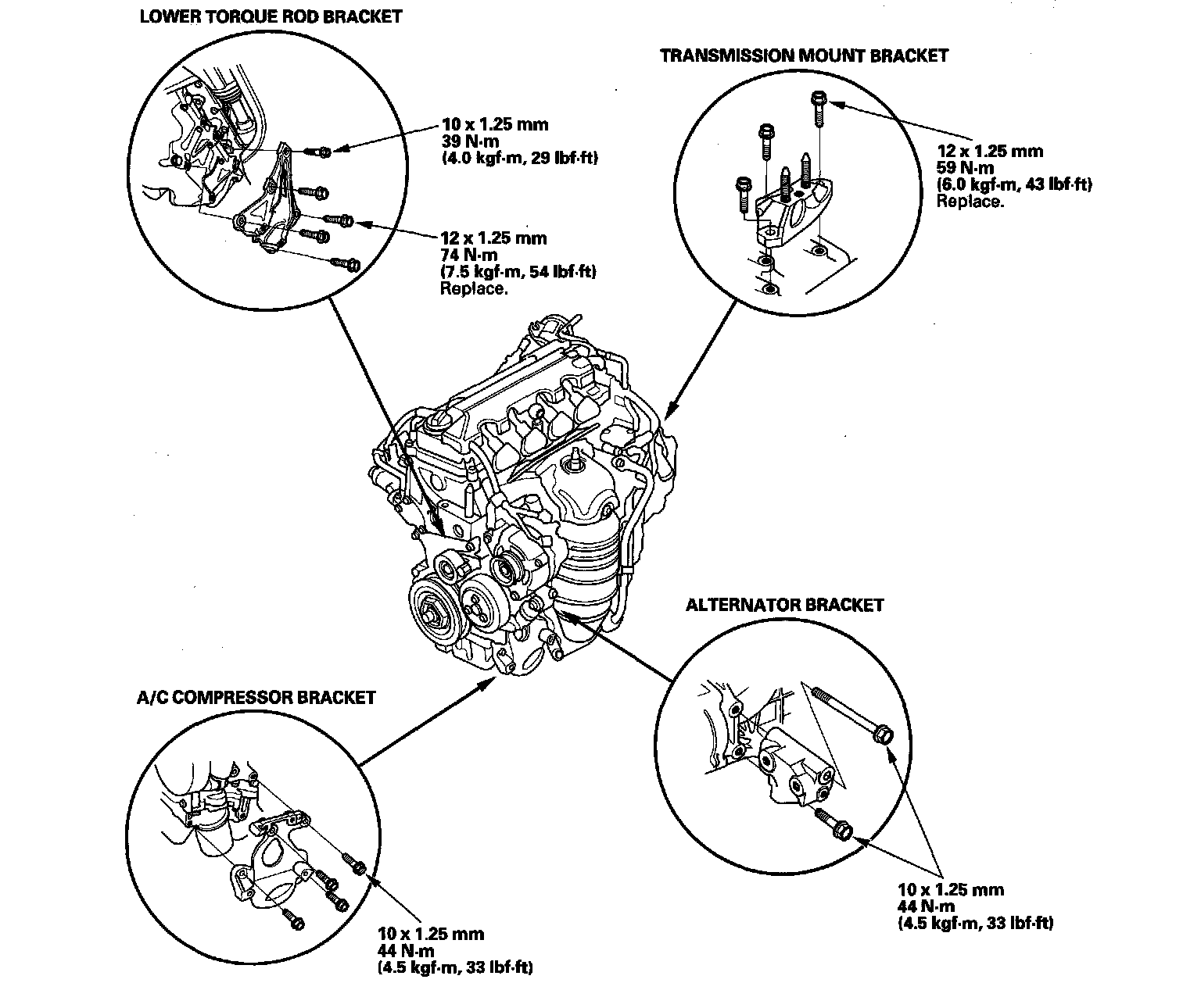 7. Tighten the new side engine mount bracket mounting bolt and nut.