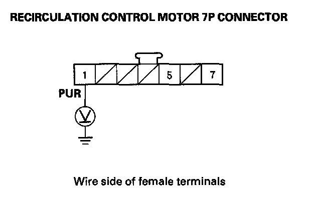 4. Measure the voltage between the recirculation control motor 7P connector No. 1 terminal and body ground.
