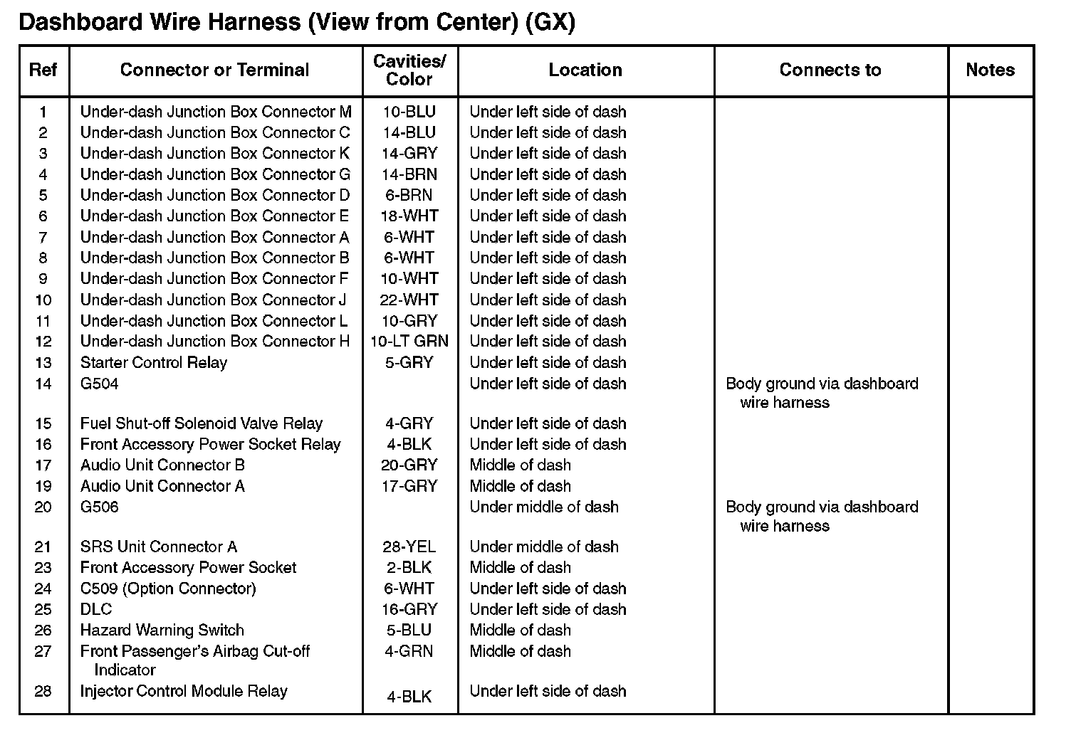 Dashboard Wire Harness (View From Center) (GX):