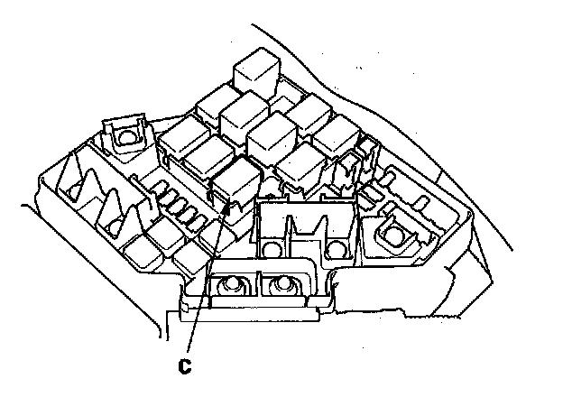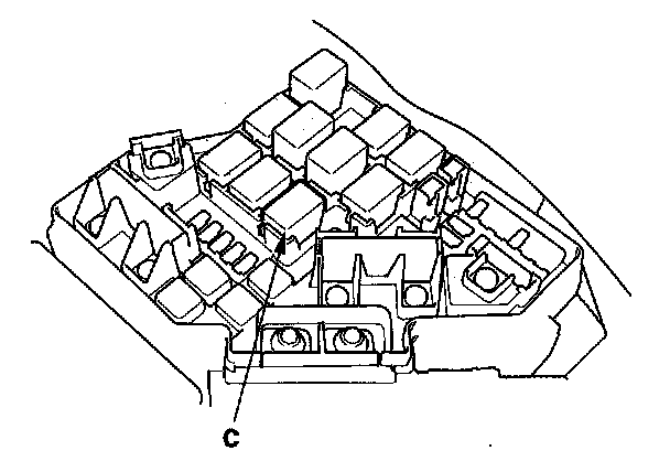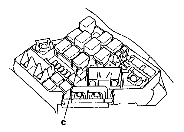 59. Remove PGM-FI main relay 1 (C) from the under-hood fuse/relay box.