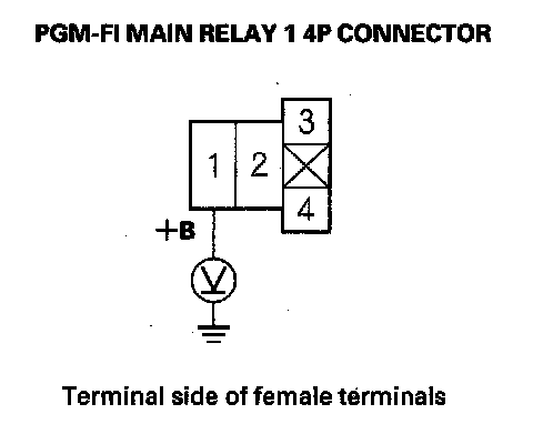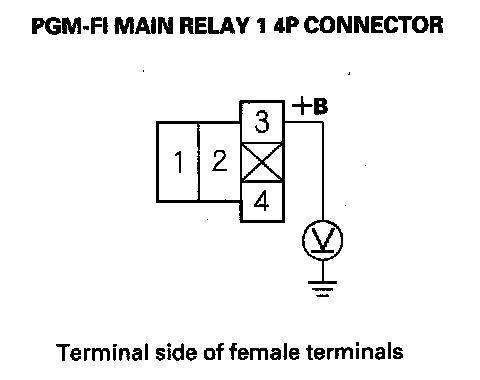 60. Measure voltage between PGM-FI main relay 1 4P connector terminal No. 3 and body ground.