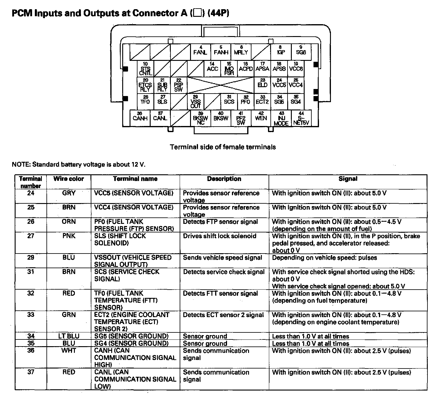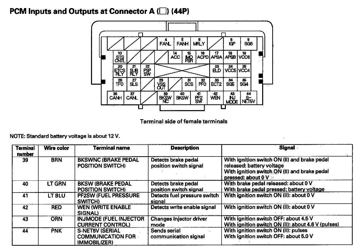 PCM Inputs And Outputs At Connector A (44P) (Part 1):
