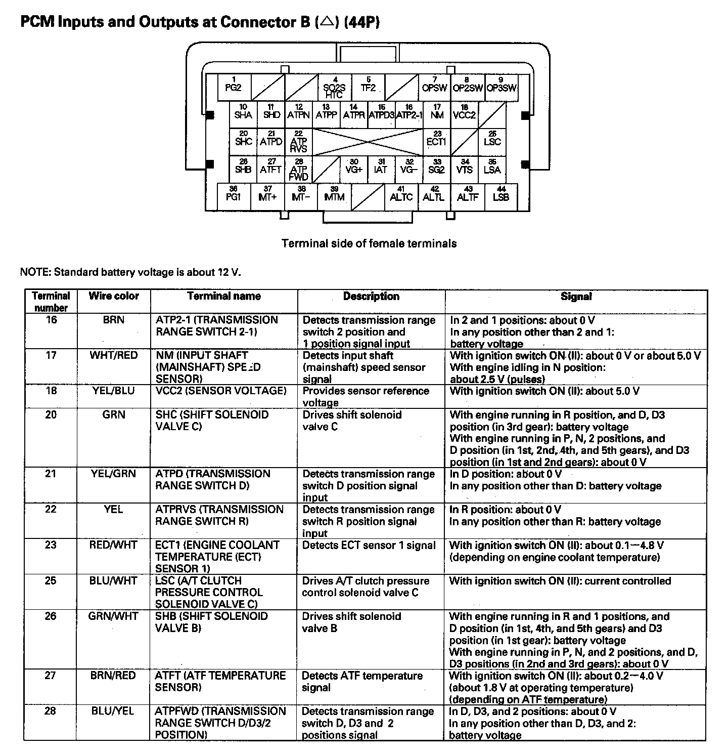 PCM Inputs And Outputs At Connector B (44P) (Part 1):