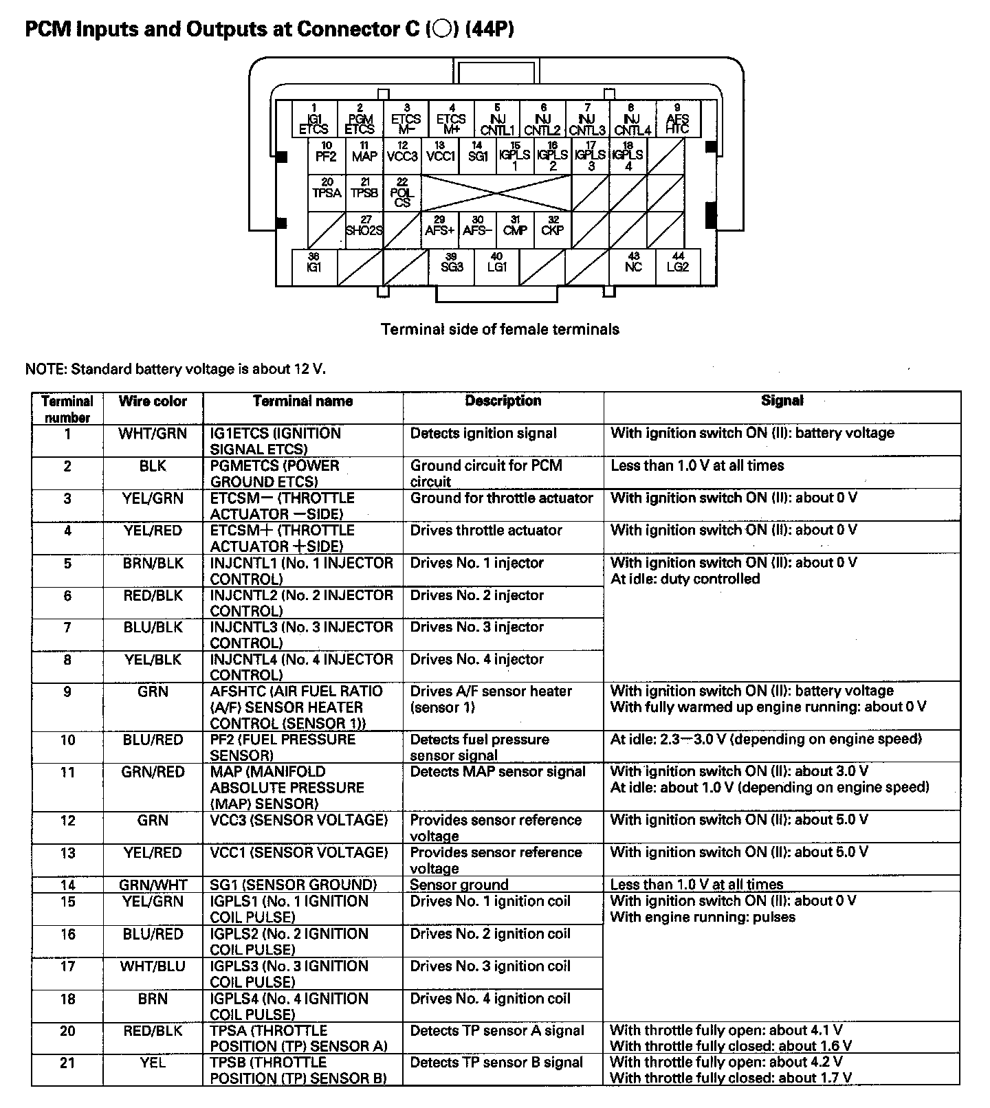 PCM Inputs And Outputs At Connector C (44P) (Part 1):