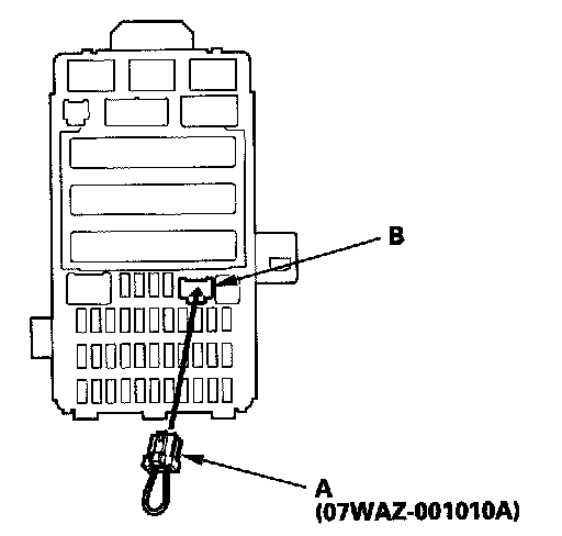 4. Connect the MPCS service connector (A) to the MCIC socket (B) in the under-dash fuse/relay box.