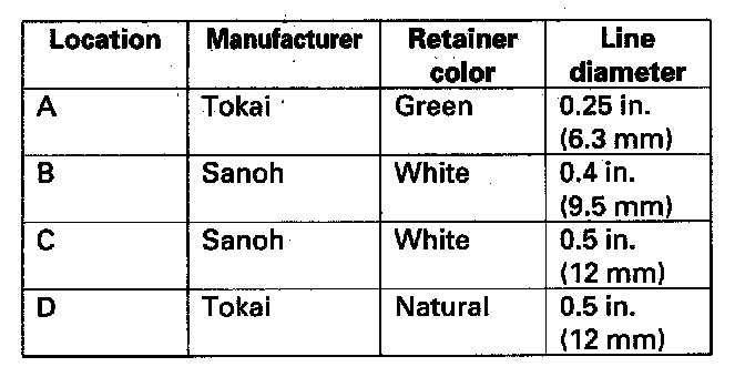 A disconnected quick-connect fitting can be reconnected, but the retainer on the mating line cannot be reused once it has been removed from the line. Replace the retainer when: