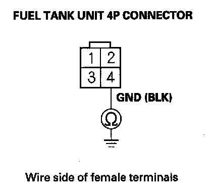 38. Check for continuity between fuel tank unit 4P connector terminal No. 4 and body ground.