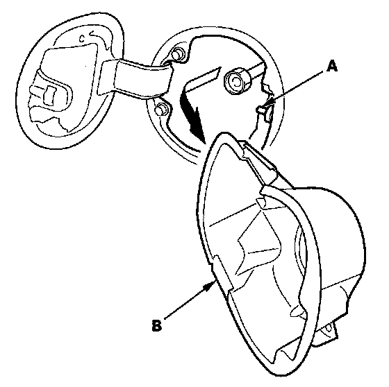 2. Remove the fuel fill door switch (A) by turning it 90 ° from the fuel receptacle adapter (B).