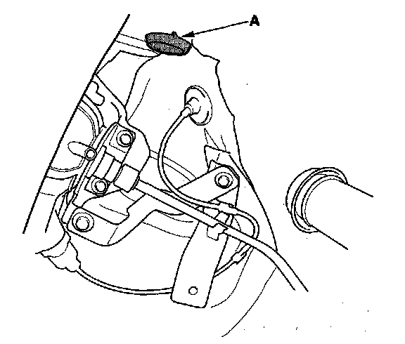 7. If no damage was noticed during the inspection, turn the ignition switch ON (II) for 2 seconds, then turn the ignition switch OFF. Within 1 minute, check for a leak at the vent hose outlet inside the fuel pipe protector (A).