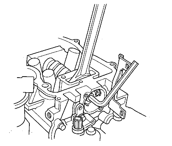 2. Hold the camshaft with a 27 mm open-end wrench, then tighten the bolt.