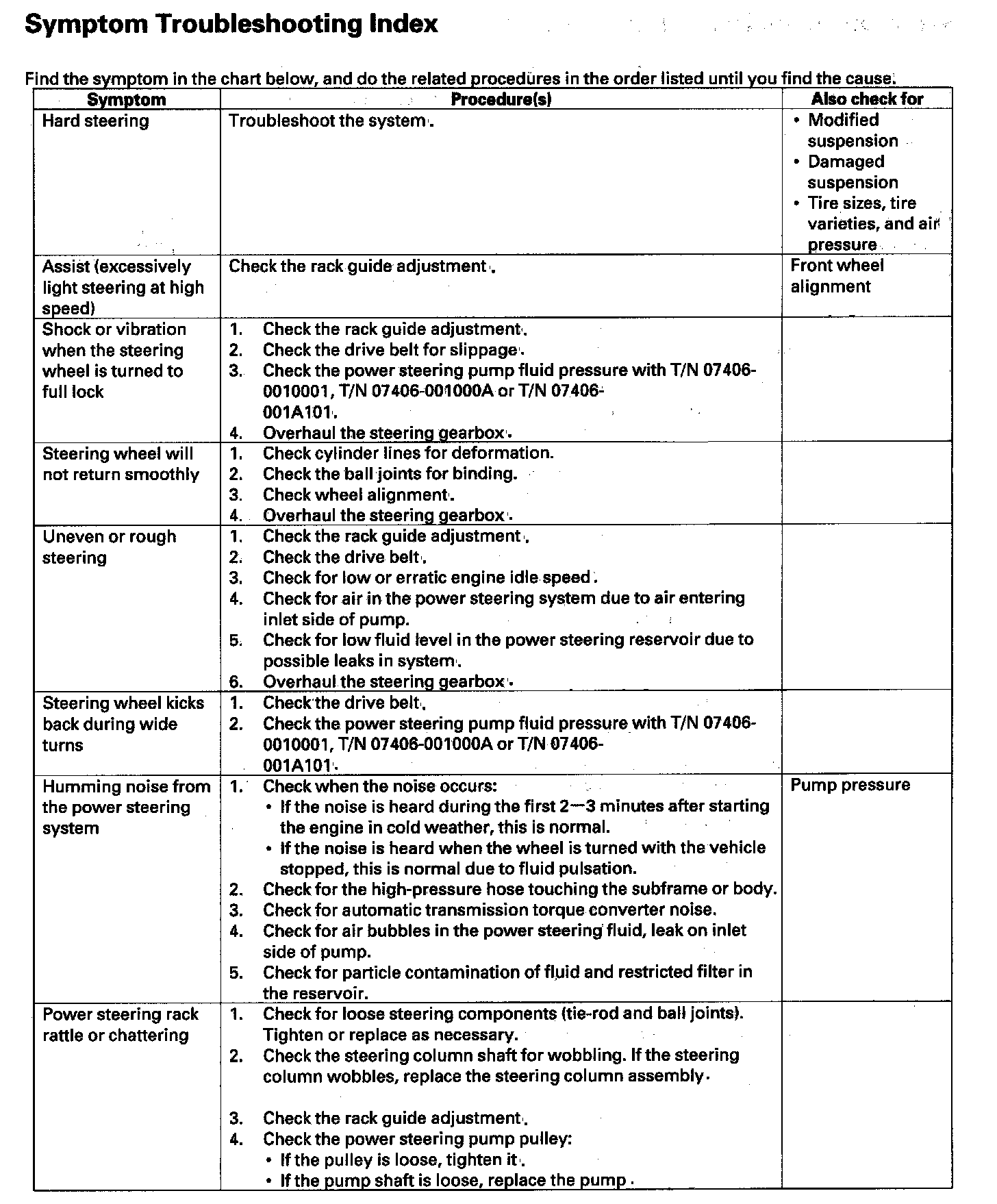 Symptom Troubleshooting Index (Part 1):