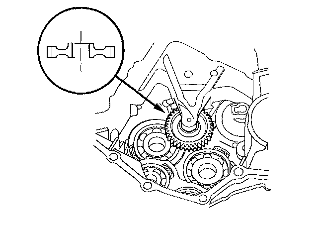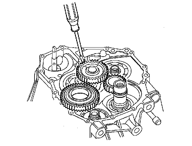 14. Wrap a screwdriver tip with tape to prevent damage to the reverse idler gear teeth. Engage the reverse idler gear with the reverse gears by rotating the idler gear using the screwdriver.