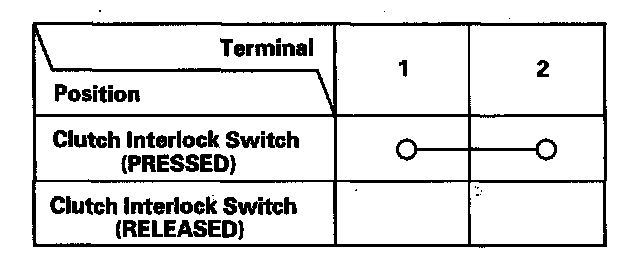 - If the continuity is not as specified, replace the clutch interlock switch.