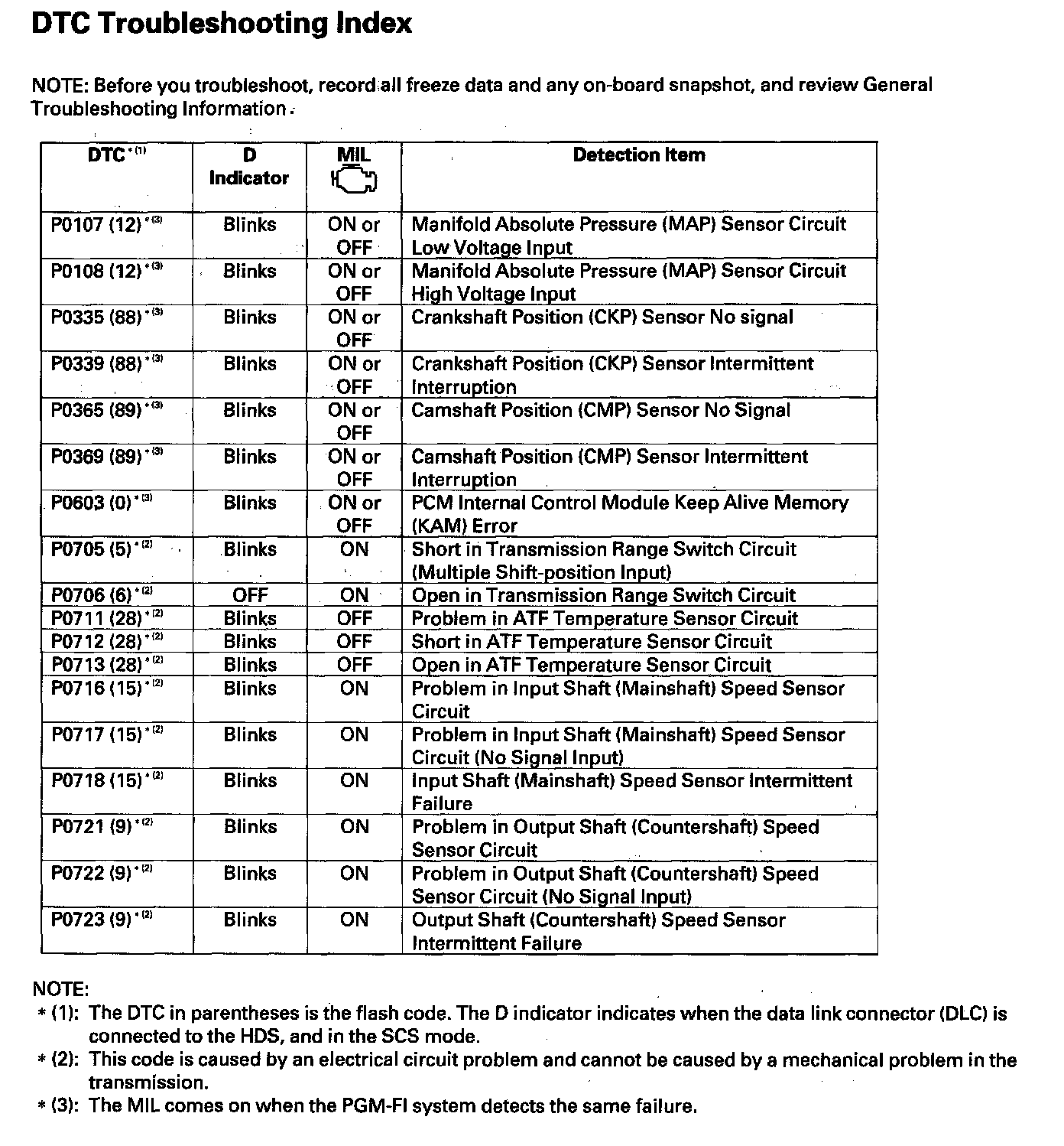 DTC Troubleshooting Index