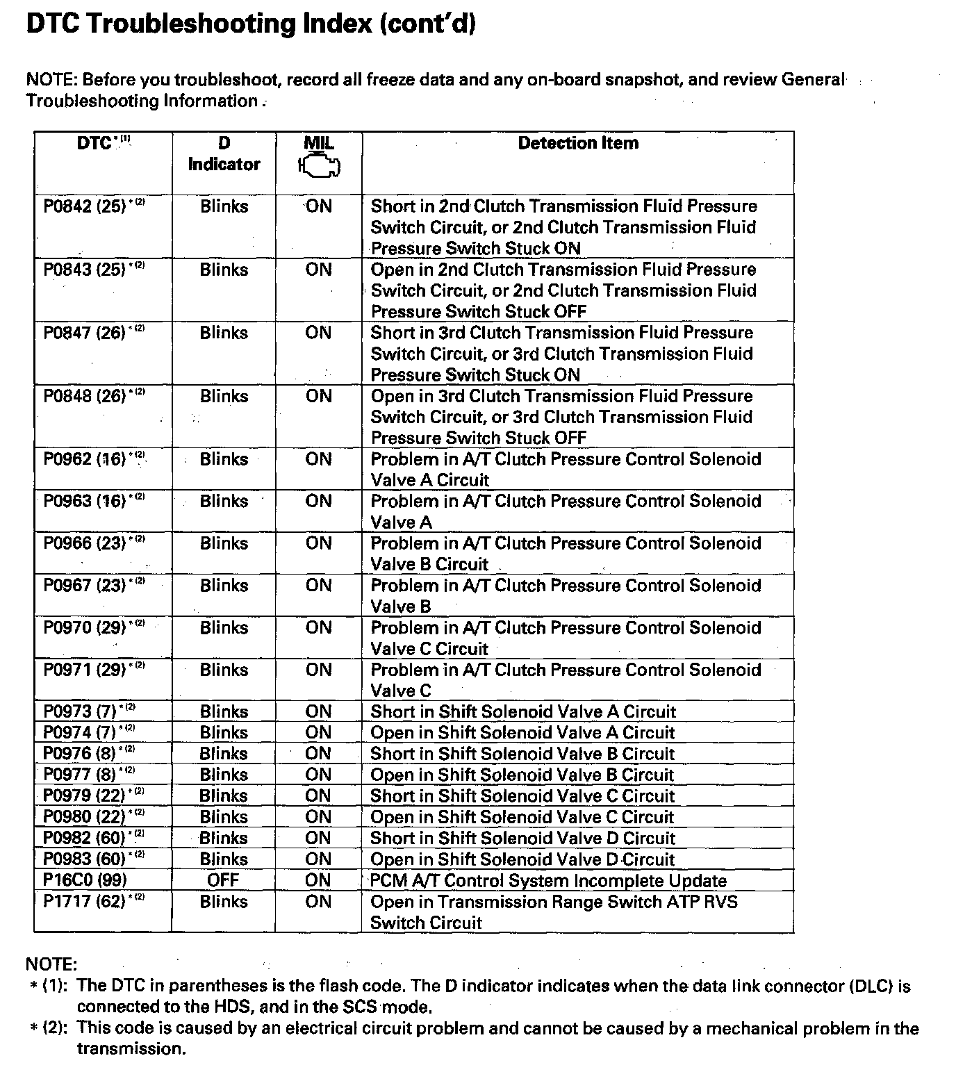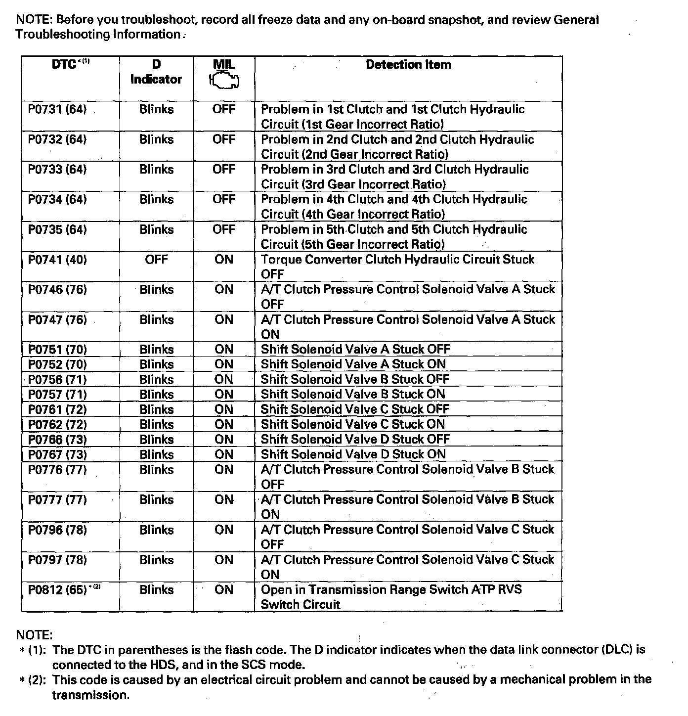 DTC List - Automatic Transmission