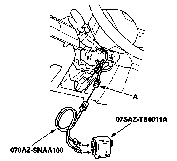 11. Connect the SRS inflator simulator (2 ohms connectors) and the simulator lead to the dashboard wire harness.