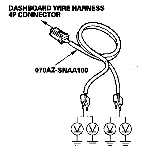 17. Disconnect the SRS inflator simulator from the SRS simulator lead. Do not disconnect the simulator lead from the dashboard wire harness 4P connector.