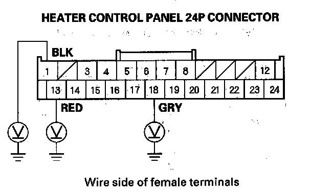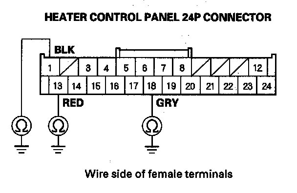 10. Check for continuity between the heater control panel 24P connector terminals as follows.