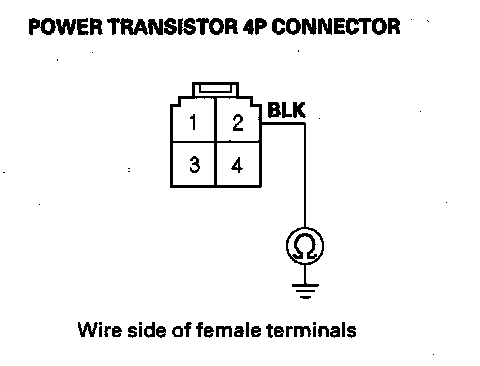 12. Check for continuity between the power transistor 4P connector No. 2 terminal and body ground.