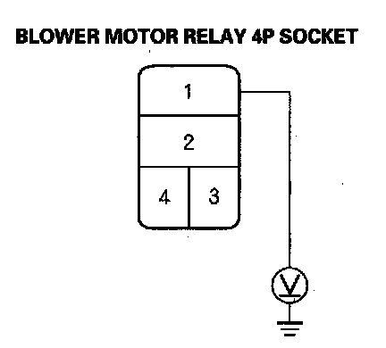 32. Measure the voltage between the blower motor relay 4P socket No. 1 terminal and body ground.