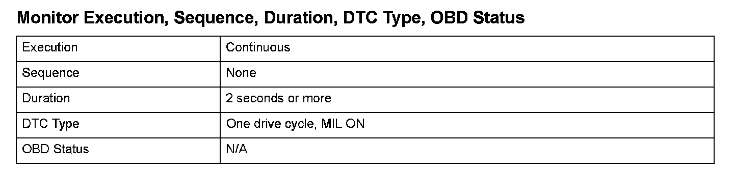 Monitor Execution, Sequence, Duration, DTC Type, OBD Status