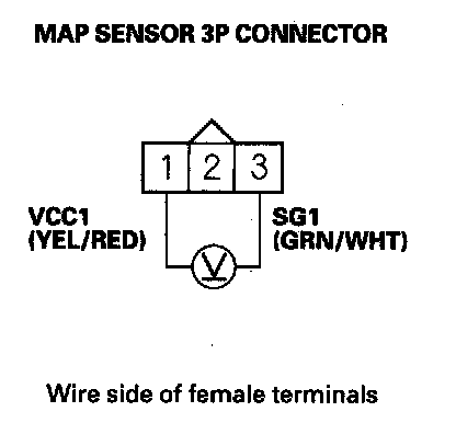 7. Measure voltage between MAP sensor 3P connector terminals No. 1 and No. 3.