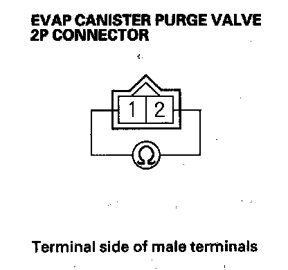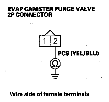 22. At the purge valve side, measure resistance between EVAP canister purge valve 2P connector terminals No. 1 and No. 2.