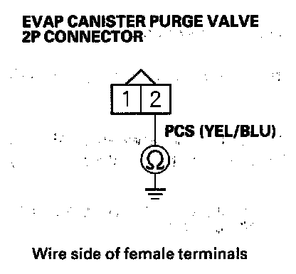 YES - Check for poor connections or loose terminals at the EVAP canister purge valve and the ECM/PCM, then go to step 1.