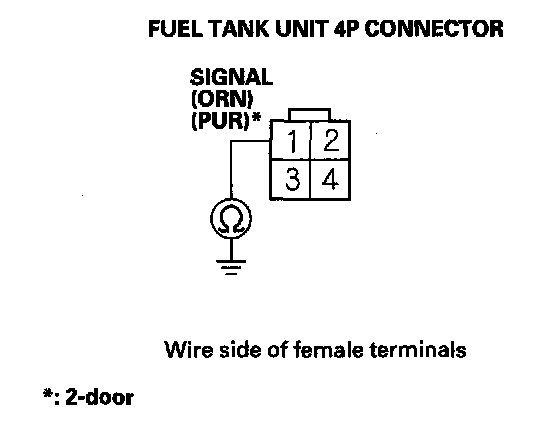 14. Check for continuity between fuel tank unit 4P connector terminal No. 1 and body ground.