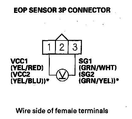 9. Measure voltage between EOP sensor 3P connector terminals No. 1 and No. 3.
