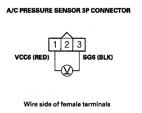 9. Measure voltage between A/C pressure sensor 3P connector terminals No. 1 and No. 3.