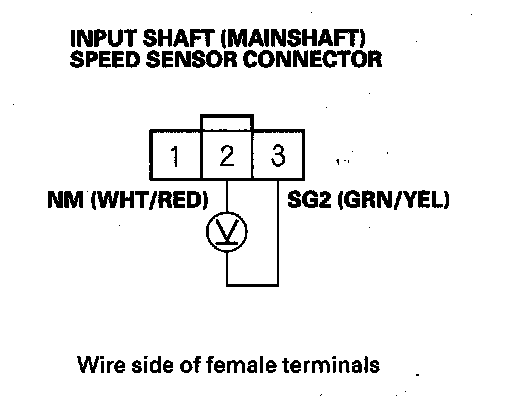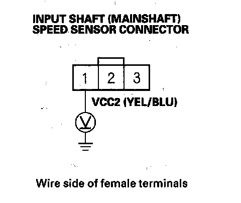 14. Measure the voltage between input shaft (mainshaft) speed sensor connector terminal No. 1 and body ground.