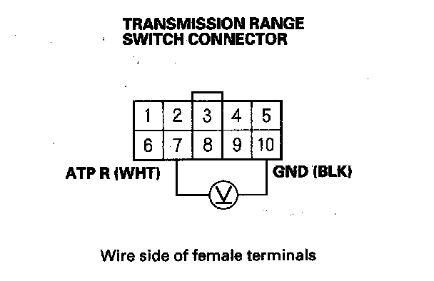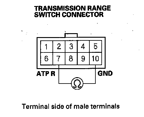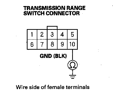 5. Check for continuity between transmission range switch connector terminal No. 10 and body ground.