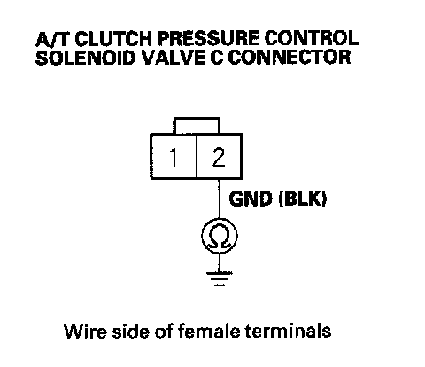 11. Check for continuity between A/T clutch pressure control solenoid valve C connector terminal No. 2 and body ground.