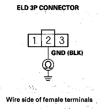 10. Check for continuity between ELD 3P connector terminal No. 2 and body ground.