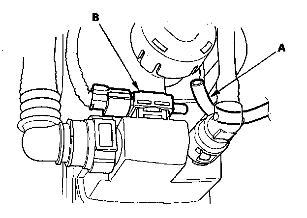17. Disconnect the air tube (A) from the FTP sensor (B).