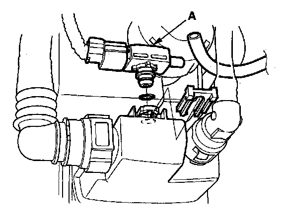 20. Remove the FTP sensor (A) from the EVAP canister with its connector connected.