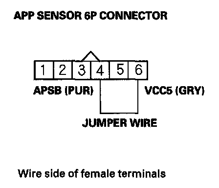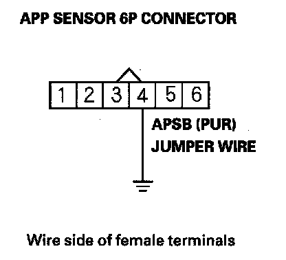 11. Connect APP sensor 6P connector terminal No. 4 to body ground with a jumper wire.