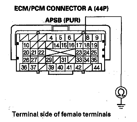 12. Check for continuity between ECM/PCM connector terminal A18 and body ground.