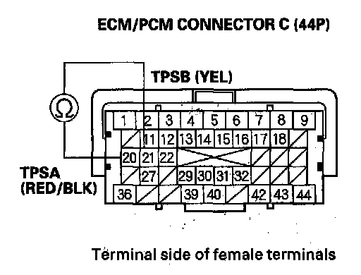 DTC P2135: TP Sensor A/B Incorrect Voltage CorrelationCAUTION: Do not insert your fingers into the installed throttle body when you turn the ignition switch ON (II) or while the ignition switch is ON (II). If you do, you will seriously injure your fingers if the throttle valve is activated.
